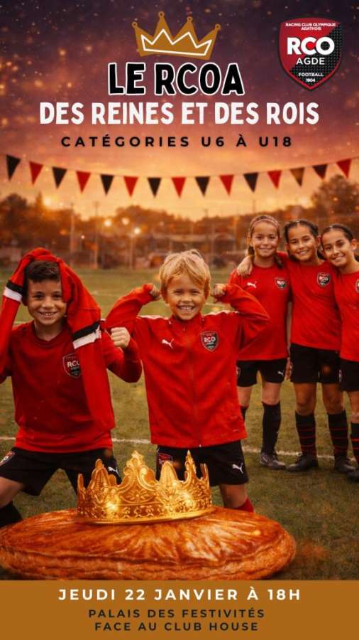 Le RCO Agde donne rendez-vous à l’ensemble de ses licenciés le jeudi 22 janvier 2026 à 18 heures, au Palais des Festivités d’Agde, situé face au club house, pour un moment inédit et fédérateur : la toute première galette des rois du club.